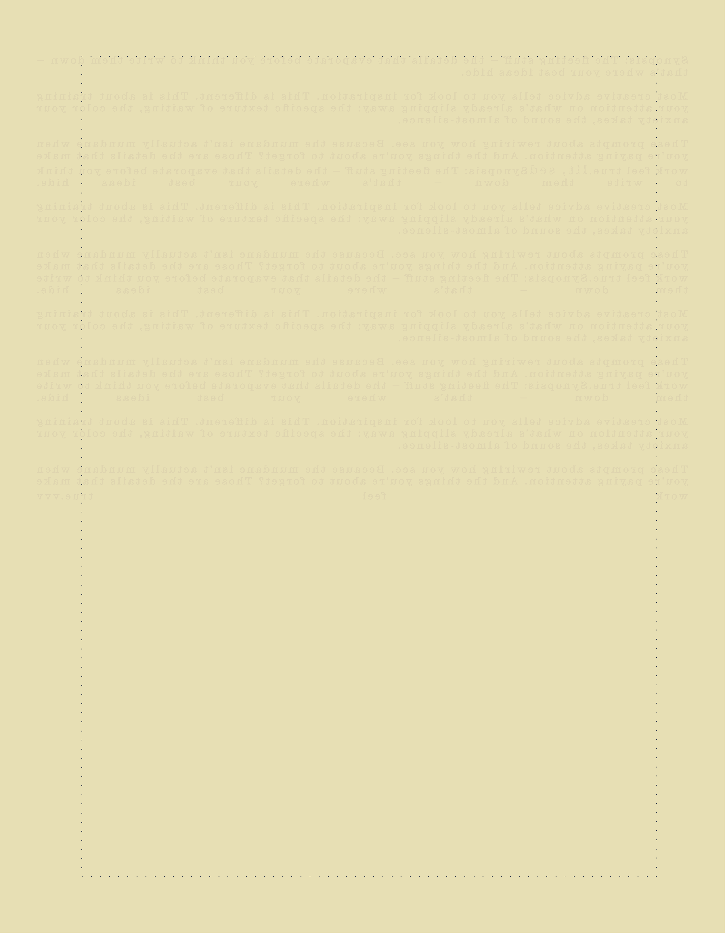 Most creative advice tells you to look for inspiration. This is different. This is about training your attention on what's already slipping away: the specific texture of waiting, the color your anxiety takes, the sound of almost-silence.